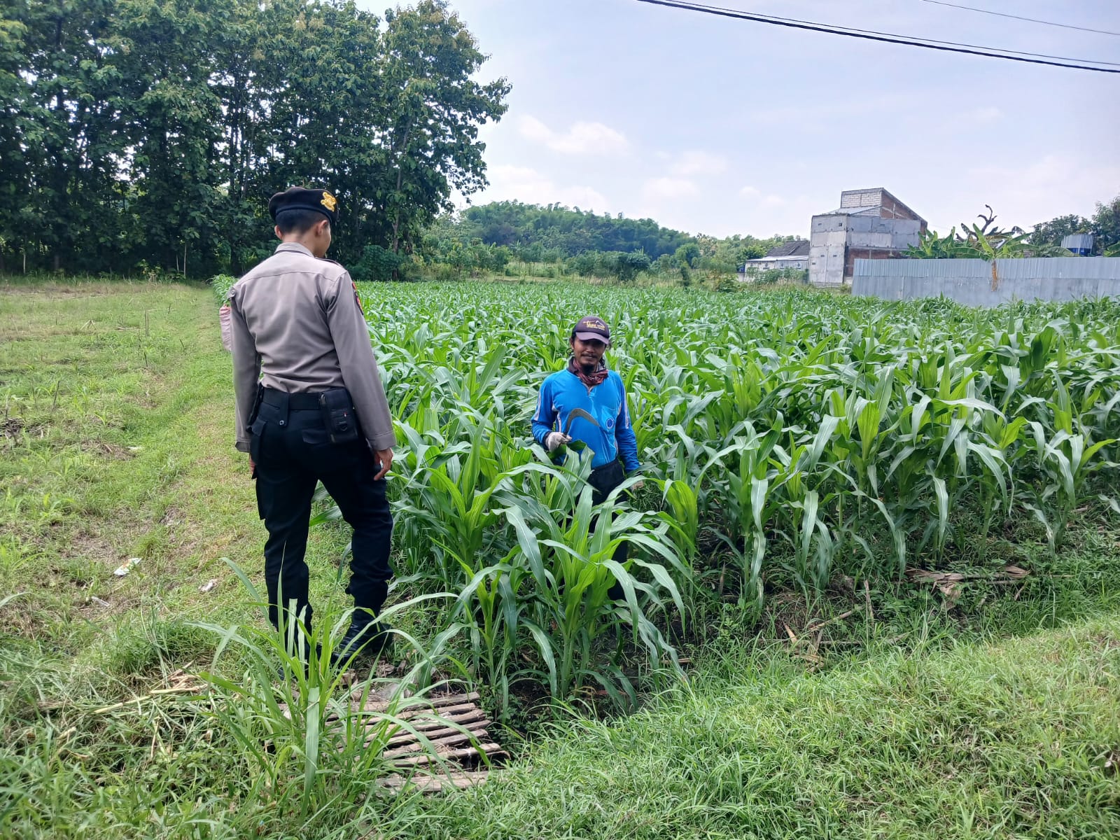 Tim yang dipimpin Iptu Bambang S.S.H (Panit 1 Samapta) bersama Aiptu Muntari dan Bripka Dwik memeriksa kondisi lahan yang ditanami jagung sebagai komoditas utama. Selama kunjungan, tim juga berinteraksi dengan warga untuk mendengar laporan perkembangan tanaman dan memberikan dorongan.