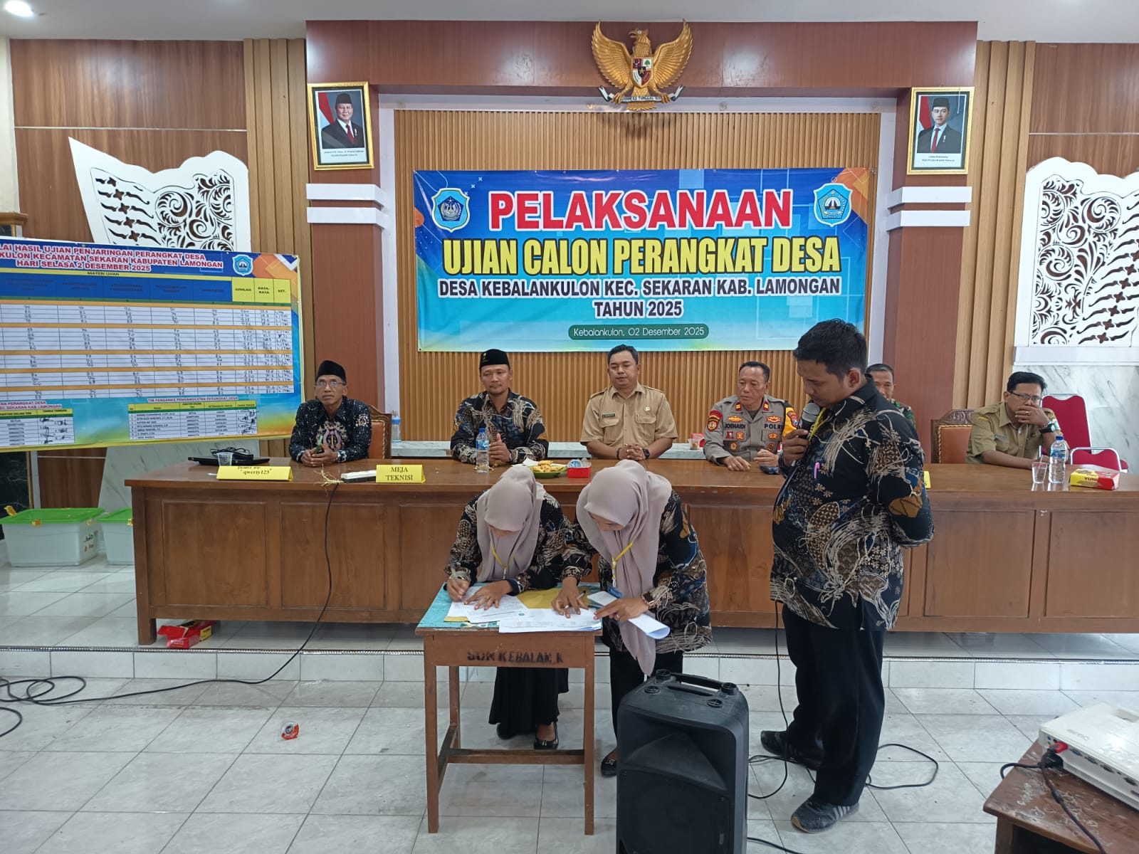Informasiindo.com//LAMONGAN – Proses ujian penjaringan perangkat Desa Kebalankulon, Kecamatan Sekaran, Kabupaten Lamongan, telah dilaksanakan pada hari Selasa, 2 Desember 2025, mulai pukul 08.00 WIB hingga selesai. Acara yang bertempat di Balai Desa Kebalankulon ini dihadiri oleh berbagai tokoh penting kecamatan dan desa.