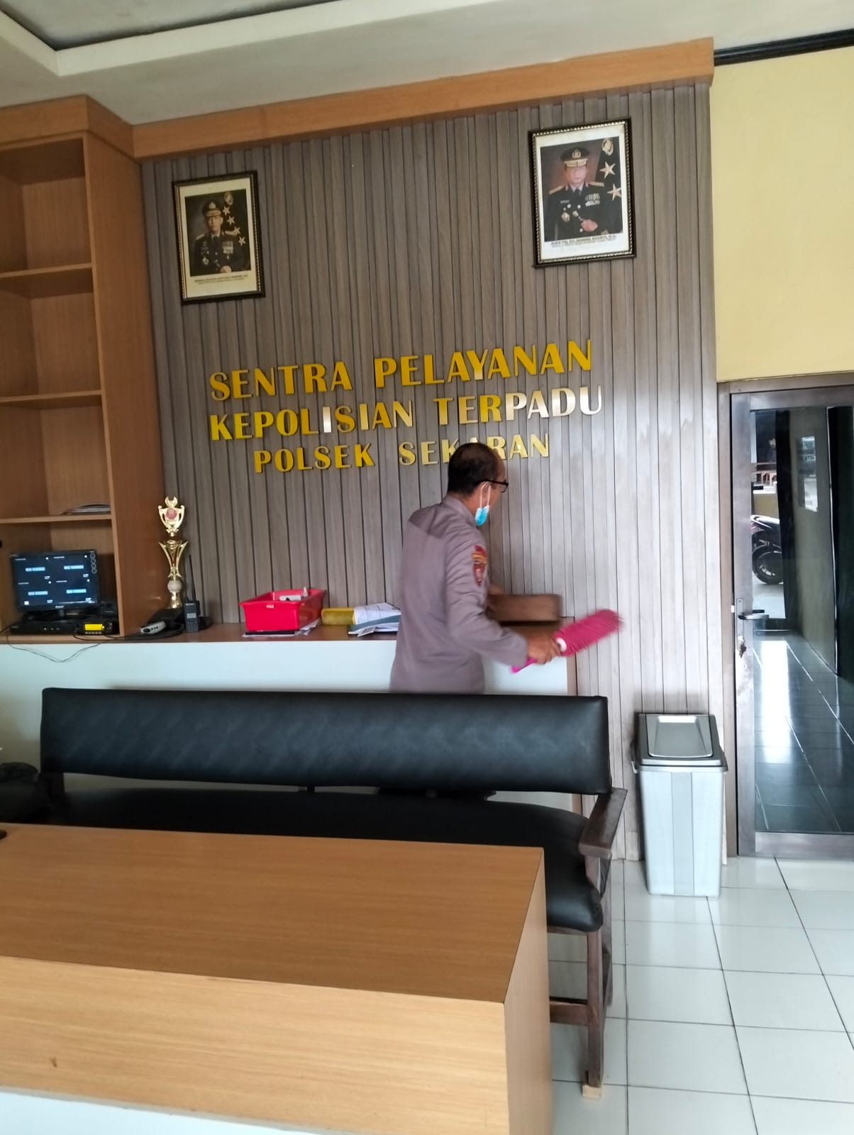 ​Kegiatan yang dimulai pukul 07.30 WIB ini dipimpin oleh personel jaga, yakni Aiptu Huriyanto, SH, Aipda Nurhasan, dan Aipda A. Sutrisno. Di bawah arahan Kapolsek Sekaran, Iptu Ahmad Zunaedi, S.IP, para personel tampak sigap memastikan seluruh fasilitas kantor dalam kondisi prima.